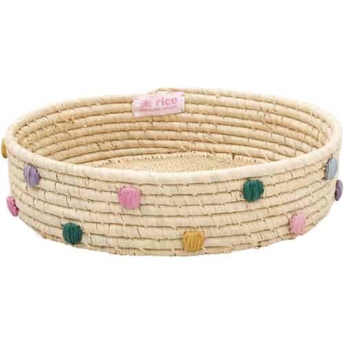 Rice Raffia Brödkorg - Rund - Färgade Prickar - Liten