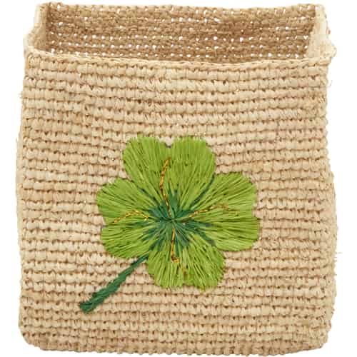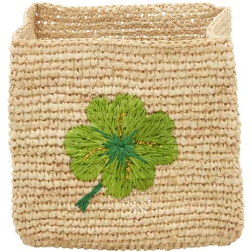 Rice Raffia Förvaringskorg - Kvadratisk - Natur - Klöver Broderi - Liten