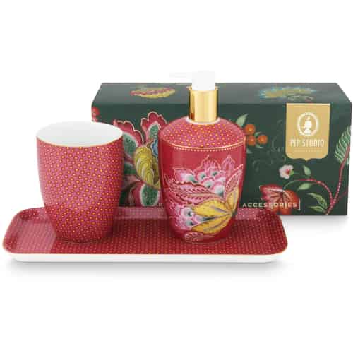 Pip Studio Muggar Stor Flower Festival Mörkrosa Set med 2 i Presentlåda