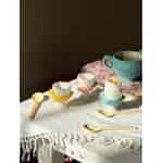 Föreställ dig en stilla morgon, solljuset som strömmar in i ditt kök och den enkla glädjen av ett perfekt kokt ägg. Tänk dig nu att det serveras i denna förtrollande lilla höna från Rice. Varje detalj, från den livfulla gula kroppen till de fint målade rosa fjädrarna och kammen, är designad för att väcka glädje. Det är en pjäs som känns både nostalgisk och underbart ny, och som förvandlar den enkla frukosten till en uppskattad daglig ritual. Dess glansiga keramikform känns gedigen i dina händer, ett bevis på dess kvalitet.