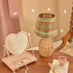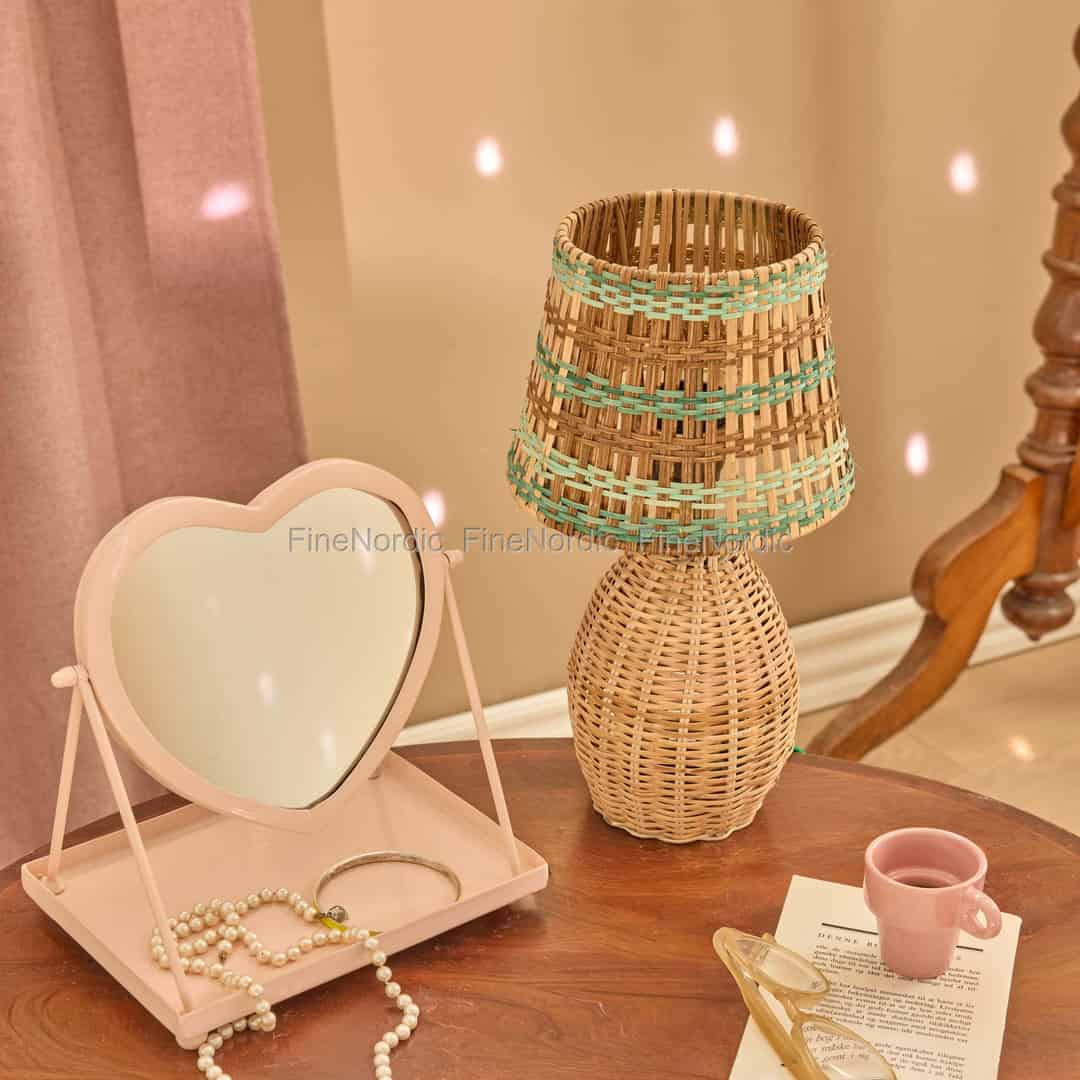 Föreställ dig ett mjukt, mönstrat ljus som fyller din favorithörna och kastar ett stillsamt sken över ditt nattduksbord eller din läsvrå. Denna charmiga lampa från Rice ger precis det – en känsla av handgjord värme och glada färger till ditt hem, vävd av naturlig raffia.
