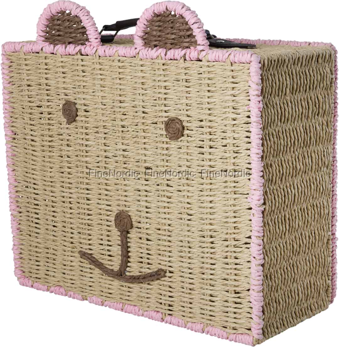 Rice Förvaringsväska i pappersrep - Björn - Rosa detaljer