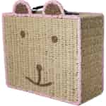 Låt en sagofigur komma till liv i barnrummet med denna förtrollande björnväska från Rice. Varje detalj, från det omsorgsfullt broderade leendet till den mjuka, rosa flätade kanten, är skapad för att väcka glädje och inspirera till fantasifull lek. Den robusta konstruktionen av flätat pappersrep ger en underbart taktil och genuin känsla, vilket gör den till mer än bara förvaring – den är en vänlig kompis som väntar på att fyllas med hemligheter och berättelser. Se hur din lilla skatt varsamt packar ner sina favoritsaker, redo för ett storslaget äventyr i vardagsrummet eller en övernattning hos mor- och farföräldrarna.