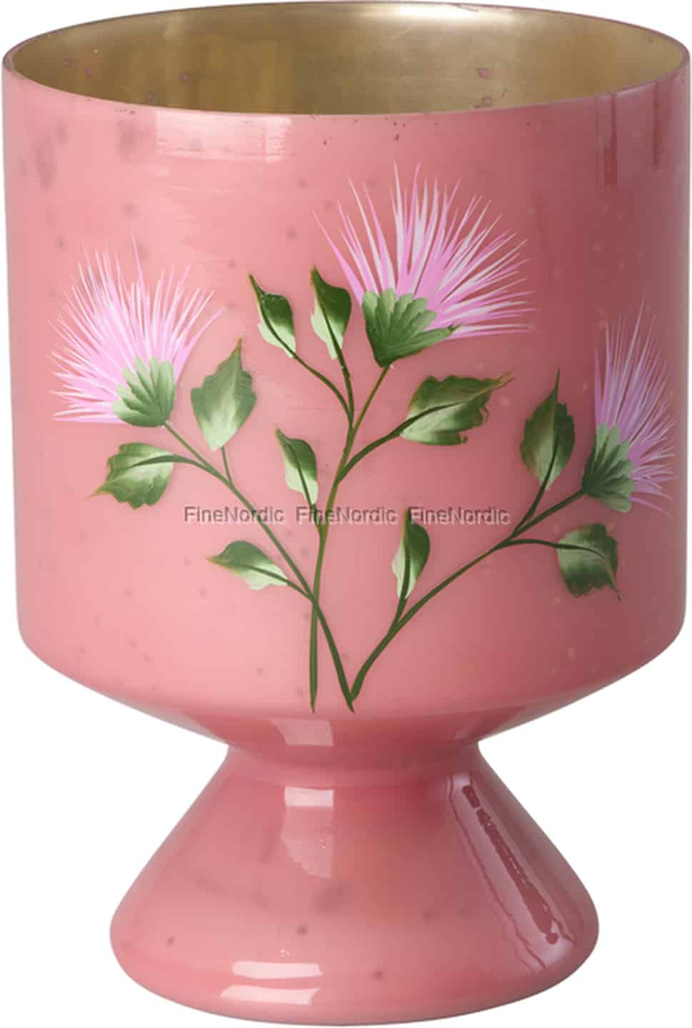 Rice Glasvas - Fot - Rosa - Handmålade blommor