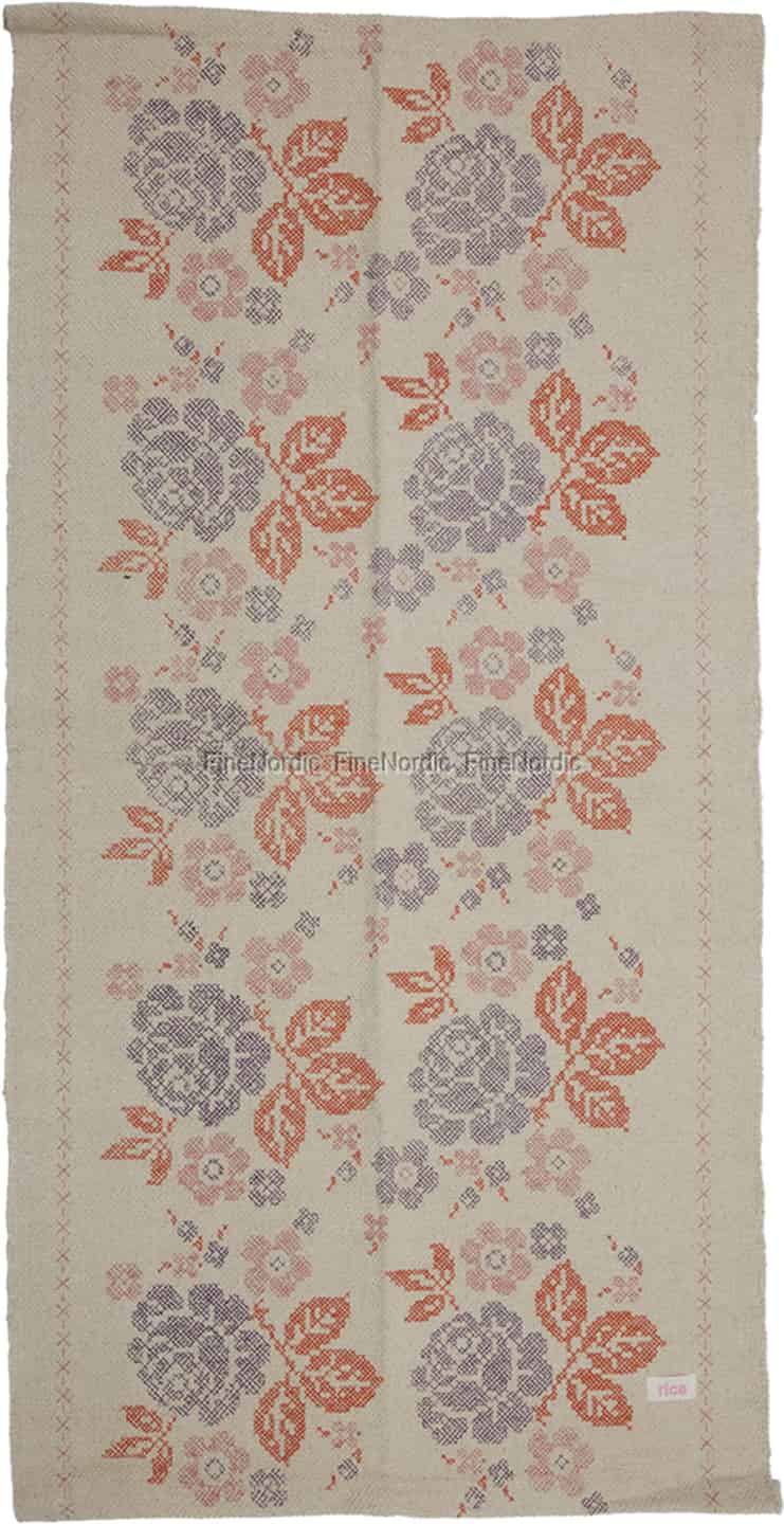 Från våra vänner på Rice kommer denna golvlöpare, en hyllning till färg, komfort och den enkla skönheten i folkkonsten. Designen, som påminner om detaljrika korsstygnsbroderier, berättar en historia om blommande trädgårdar och stilla, kreativa eftermiddagar. Varje stiliserad ros och blad, mot den naturligt sandfärgade bomullen, skapar ett mönster som är både nostalgiskt och underbart samtida. Det är en inredningsdetalj som inte bara täcker ett golv; den fyller ditt rum med den karaktäristiska, glädjefyllda anda som Rice är känt för.
