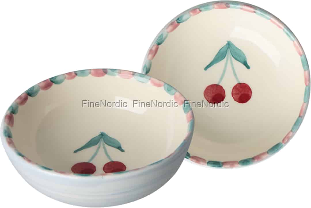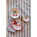 Föreställ dig ditt frukostbord upplyst av sommarkörsbärens lekfulla charm. Denna förtjusande lilla skål från Rice ger en touch av handmålat konstnärskap till dina vardagsstunder, perfekt för din favoritsylt eller färska bär.