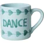 - Unik handmålad charm: Varje mugg pryds av ordet 'DANCE' och söta hjärtmotiv, allt målat för hand. Detta innebär att din mugg har en helt personlig prägel, och inga två är exakt likadana.
