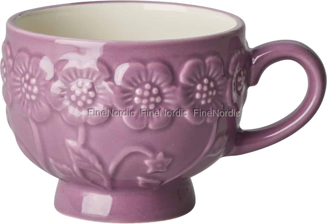 Föreställ dig att börja dagen med en varm dryck, omsluten av denna charmiga lila mugg. De ljuvliga präglade blommorna känns underbara att vidröra och förvandlar ditt dagliga kaffe eller te till en liten, glädjefylld stund.