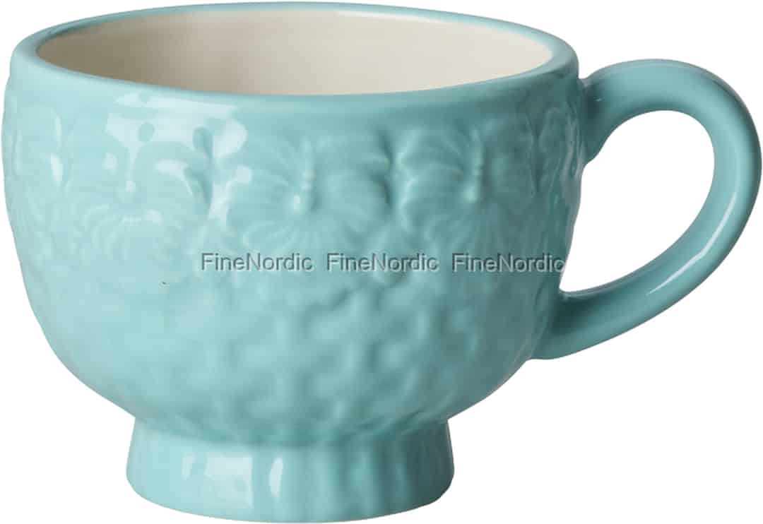 Rice Keramikmugg - Präglade blommor - Mint