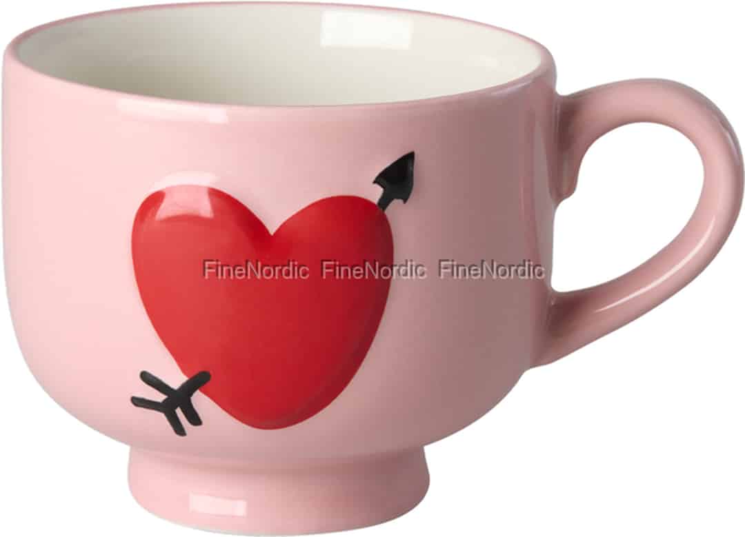 Rice Keramikmugg - Präglat hjärta - Rosa