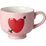 Från de kreativa själarna hos Rice kommer en mugg som perfekt fångar deras filosofi om glädje, funkighet och funktionalitet. Denna charmiga skapelse är mer än bara en behållare för din dryck; den är en liten explosion av lycka för dina händer och ditt hem. Den mjukt rosa keramiken utgör en glad bakgrund för det djärva, glansiga röda hjärtat, genomborrat av en lekfull pil. Varje detalj, från den taktila präglade designen till det robusta, bekväma handtaget, har noga övervägts för att göra dina dagliga ritualer lite mer speciella och mycket mer färgstarka.