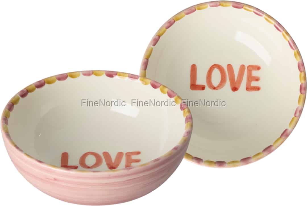 Rice Keramikskål - Handmålad "LOVE" rosa