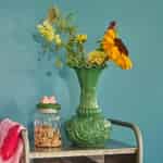 - En fyllig, lysterfull färg: Vasen har en livfull grön glasyr med en vacker lyster som fångar ljuset på ett förtrollande sätt och skänker en känsla av fräschör och vitalitet till hemmets alla hörn.