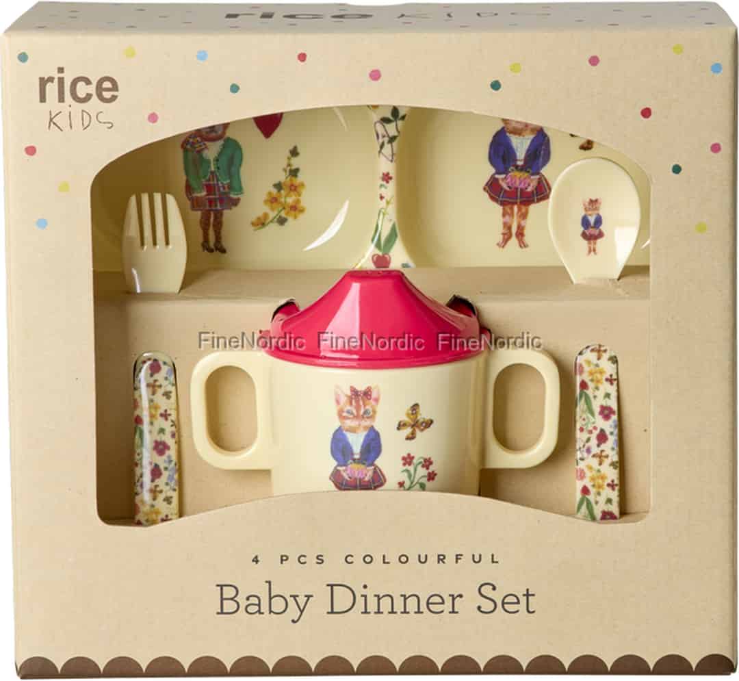 Rice Melamin barnservis i presentförpackning "Nathalie Lété" Krämvit - Set om 4 delar