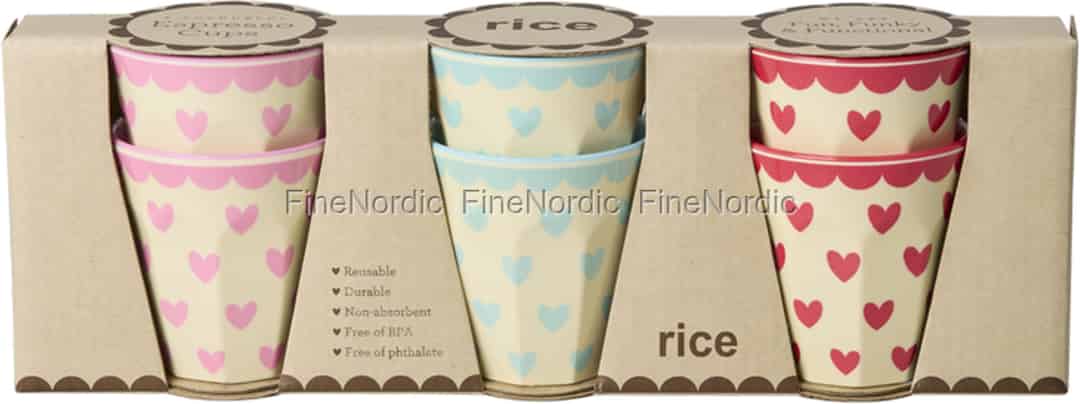 Rice Melamin espressokoppar "Favorite Hearts" - Set om 6 i presentförpackning