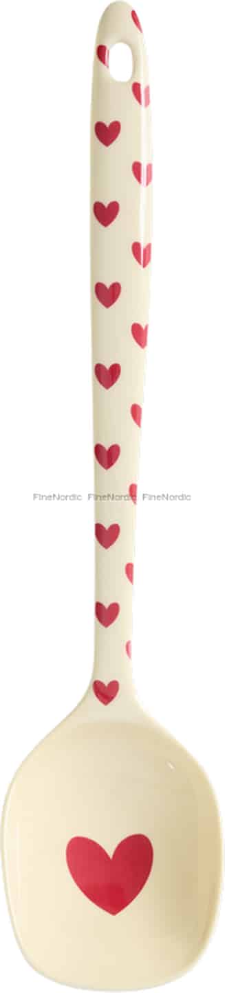 Ge dina köksritualer en gnutta glädje med denna förtjusande grytsked från Rice. Den cremefärgade basen och de glada röda hjärtana är designade för att locka fram ett leende, oavsett om du rör i en puttrande sås eller serverar en familjefavorit.