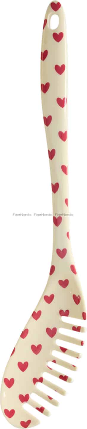 Det danska varumärket Rice tror på att addera färg och glädje i vardagen, och denna vackra pastasked är ett perfekt exempel på deras filosofi. Den är mer än bara ett redskap; den är ett litet stycke lycka, designad för att lysa upp dina dagliga rutiner. Mönstret "Favorite Hearts" är en signatur av glädje som förvandlar den enkla handlingen att förbereda och servera mat till en hjärtlig upplevelse. Du kommer att finna dig själv leende varje gång du sträcker dig efter den, oavsett om du serverar en tröstande skål pasta till din familj eller en färgstark sommarsallad till vänner.