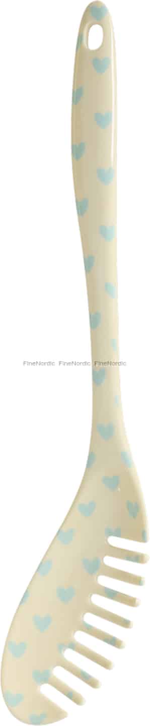 Från hjärtat av Danmark ger Rice dig ett köksredskap som är mer än bara funktionellt – det är en liten bit av lycka. Pastasleven 'Favorite Hearts' är en hyllning till de små, glädjefyllda stunderna som gör ett hus till ett hem. Dess krämvita bas utgör den perfekta duken för ett lekfullt mönster av mintfärgade hjärtan, vilket tillför en finurlig touch till din dagliga rutin. Den glansiga melaminen känns len och gedigen i handen, och förvandlar den enkla handlingen att servera en måltid till en mer omtänksam och uppskattad upplevelse.