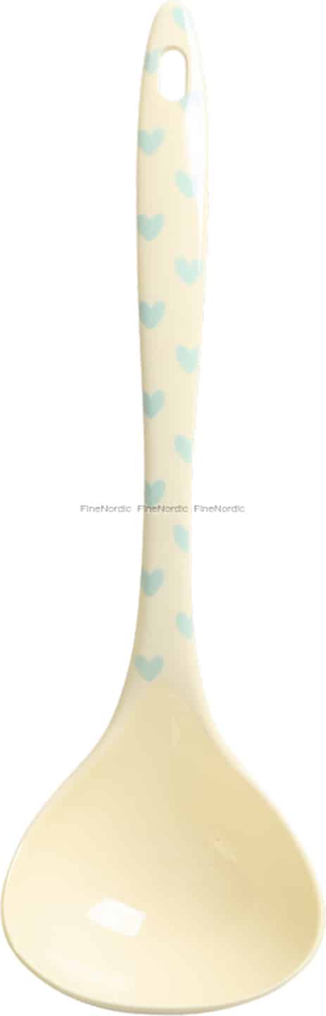 I varje kök finns det redskap som är rent praktiska, och så finns det de som lockar fram ett leende. Denna vackra serveringsslev från Rice tillhör definitivt den senare kategorin. Tillverkad av robust, glansig melamin, är dess krämvita bas beströdd med ett förtjusande mönster av mintgröna hjärtan som erbjuder en daglig dos av charm. Det långa handtaget och den djupa skålen gör den idealisk för att servera generösa portioner av din favoritmat, från en livfull vegetarisk curry till en klassisk söndagsstekssås. Det är ett redskap som känns härligt gediget men ändå lätt i handen.