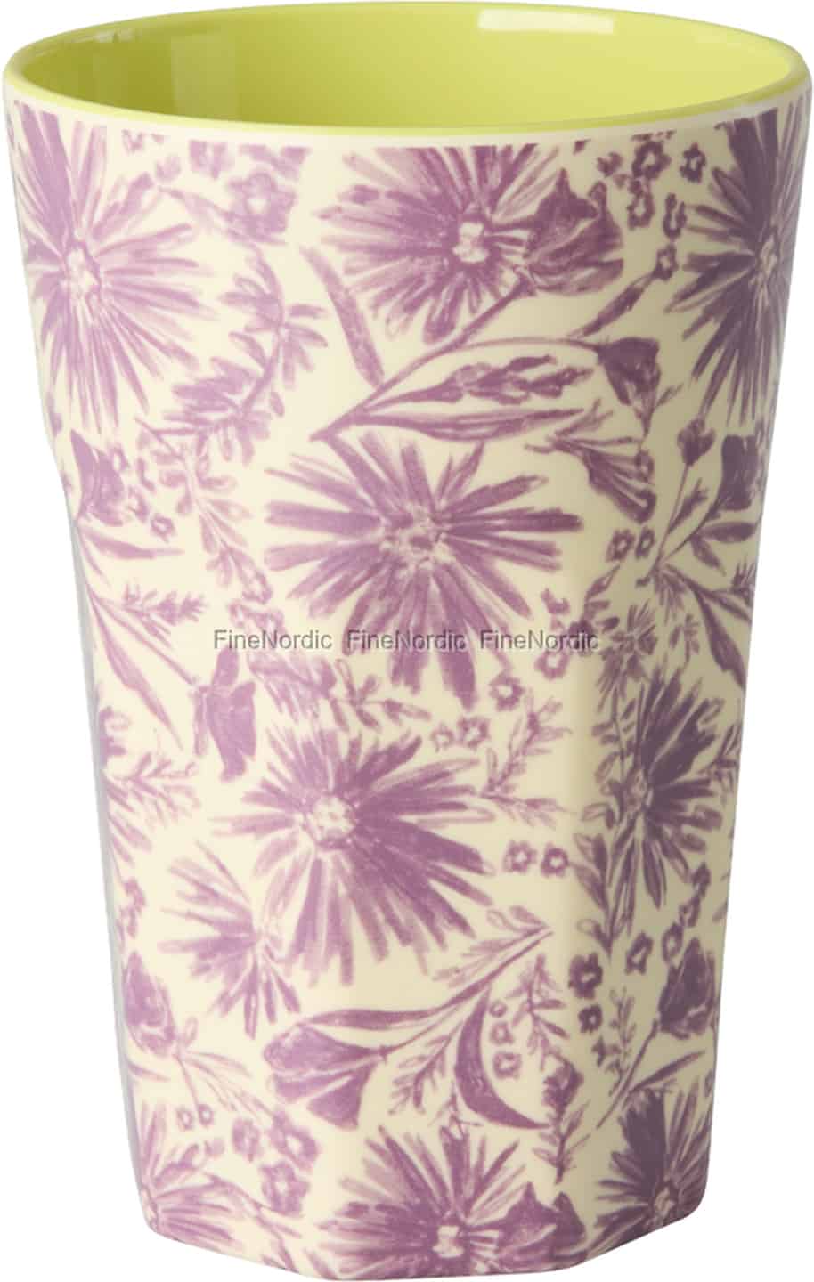 Föreställ dig din morgonjuice eller ditt iste på eftermiddagen i en mugg som känns som ett kärt minne från en sommaräng. Denna förtjusande melaminmugg från Rice fångar den skira skönheten hos pressade vildblommor i ett ljuvligt malvafärgat tryck.