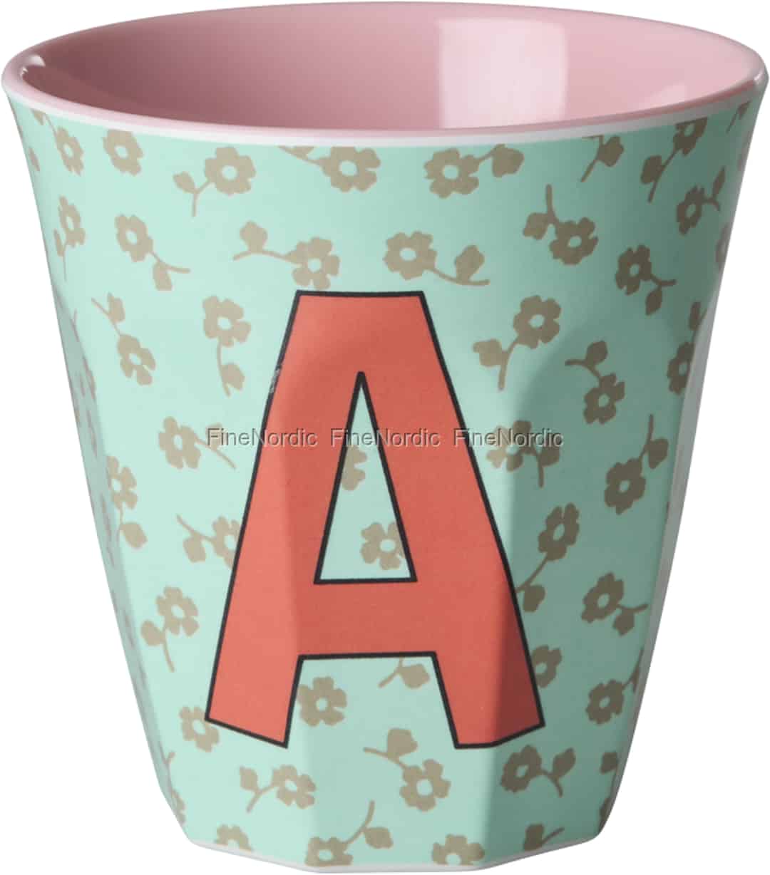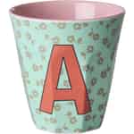 Föreställ dig ditt morgonte eller kaffe serverat i en mugg som känns som att den är gjord just för dig. Denna vackra alfabetsmugg från Rice kombinerar lekfull design med vardaglig funktionalitet. Den glansiga melaminen känns len i handen, medan den mintgröna utsidan, prydd med söta beiga blommor, utgör en charmig bakgrund för den djärva, korallfärgade bokstaven. Insidan i en vacker, mjuk rosa färg blir en förtjusande, dold överraskning varje gång du tar en klunk.