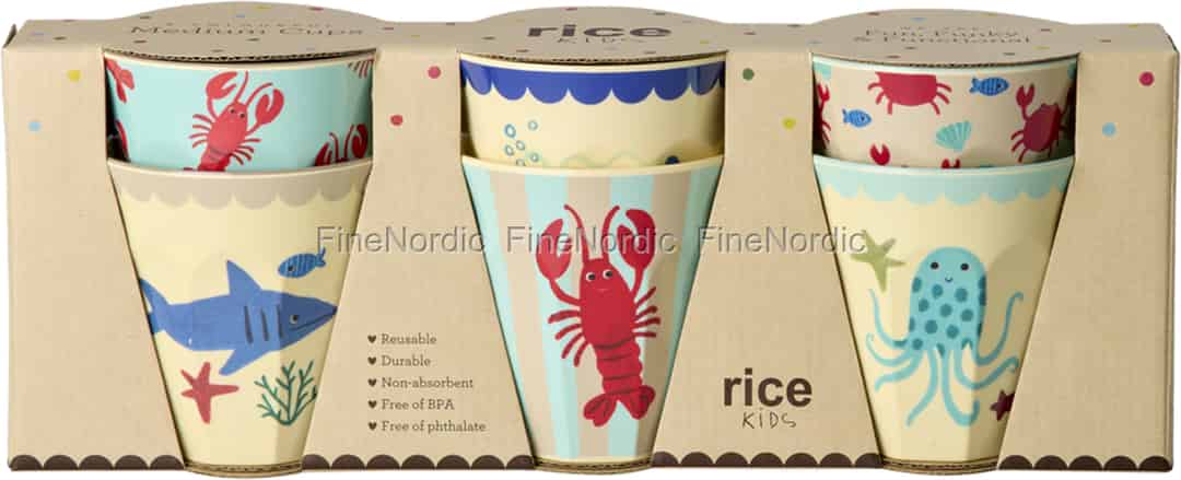 Låt ditt barns fantasi dyka ner i en underbar undervattensvärld. Detta förtjusande set med sex melaminmuggar från Rice bjuder in vänliga hajar, glada humrar och leende bläckfiskar till matbordet, och förvandlar varje dryckesstund till en glädjefylld berättelse från havet.