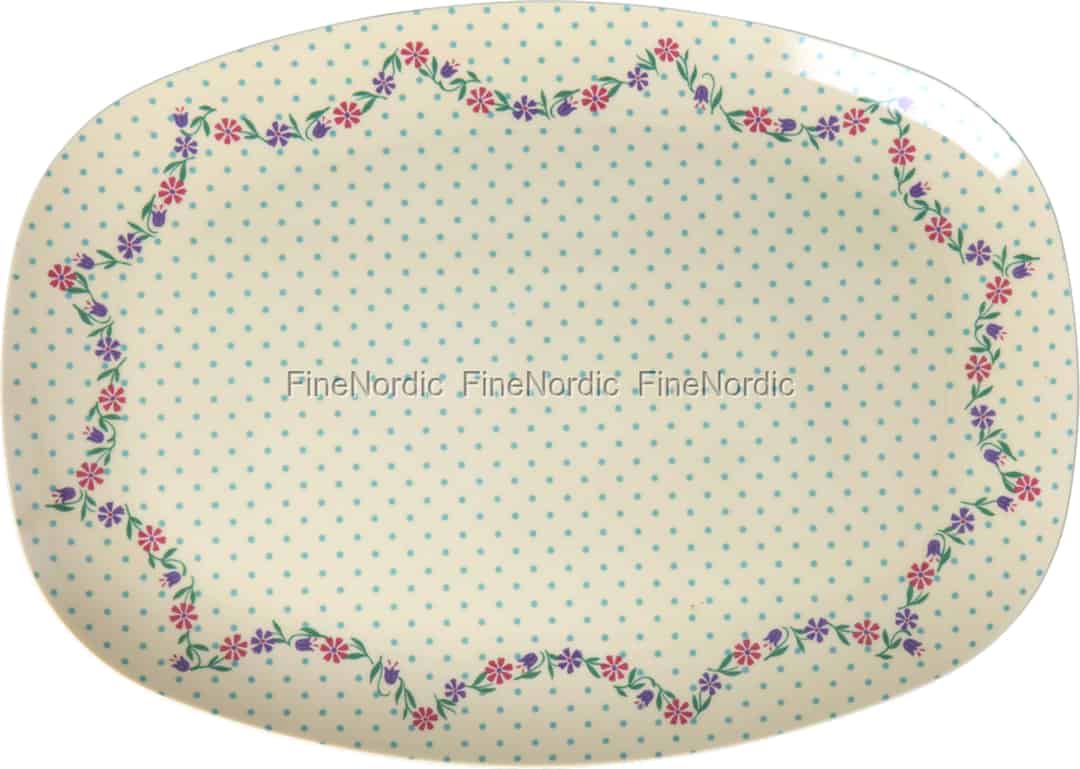 Rice Melamintallrik - Rektangulär "Dots and Flowers"