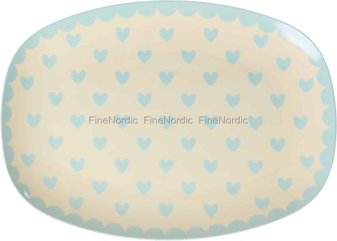 Föreställ dig att addera en ljuvlig färgklick och en dos kärlek till din vardag. Denna underbara rektangulära tallrik från Rice, med sina söta mintfärgade hjärtan och vågiga kant, är skapad för att locka fram ett leende vid varje måltid.