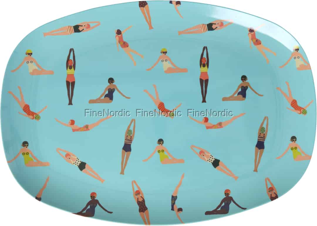 Fånga den glädjefyllda känslan av en solig semester vid ditt bord med denna förtjusande tallrik från Rice. Dekorerad med ett lekfullt retromotiv av simmare är den en underbar följeslagare för att dela stunder och skapa minnen utomhus.