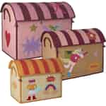 Förvandla städningen från en tråkig syssla till ett förtjusande äventyr. Detta charmiga set med tre raffiahus från Rice erbjuder ett magiskt hem för ditt barns leksaker, skatter och hjälteberättelser. Varje korg är en saga som väntar på att få veckla ut sig.