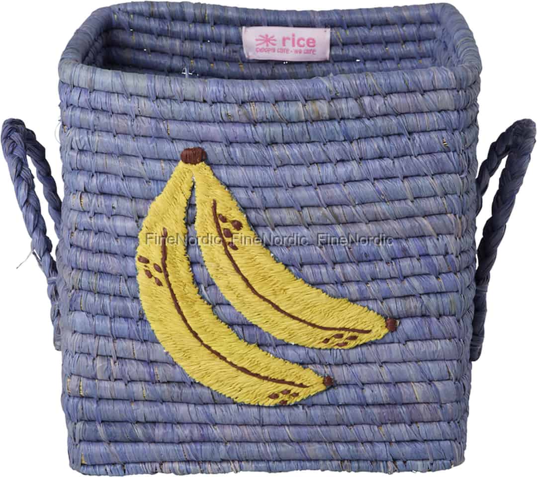 Ge ditt hem en härlig och oväntad touch med denna underbara korg från Rice. Det glada bananbroderiet och den vackra, dammigt blå raffiaväven kommer garanterat att locka fram ett leende varje gång du ser den.