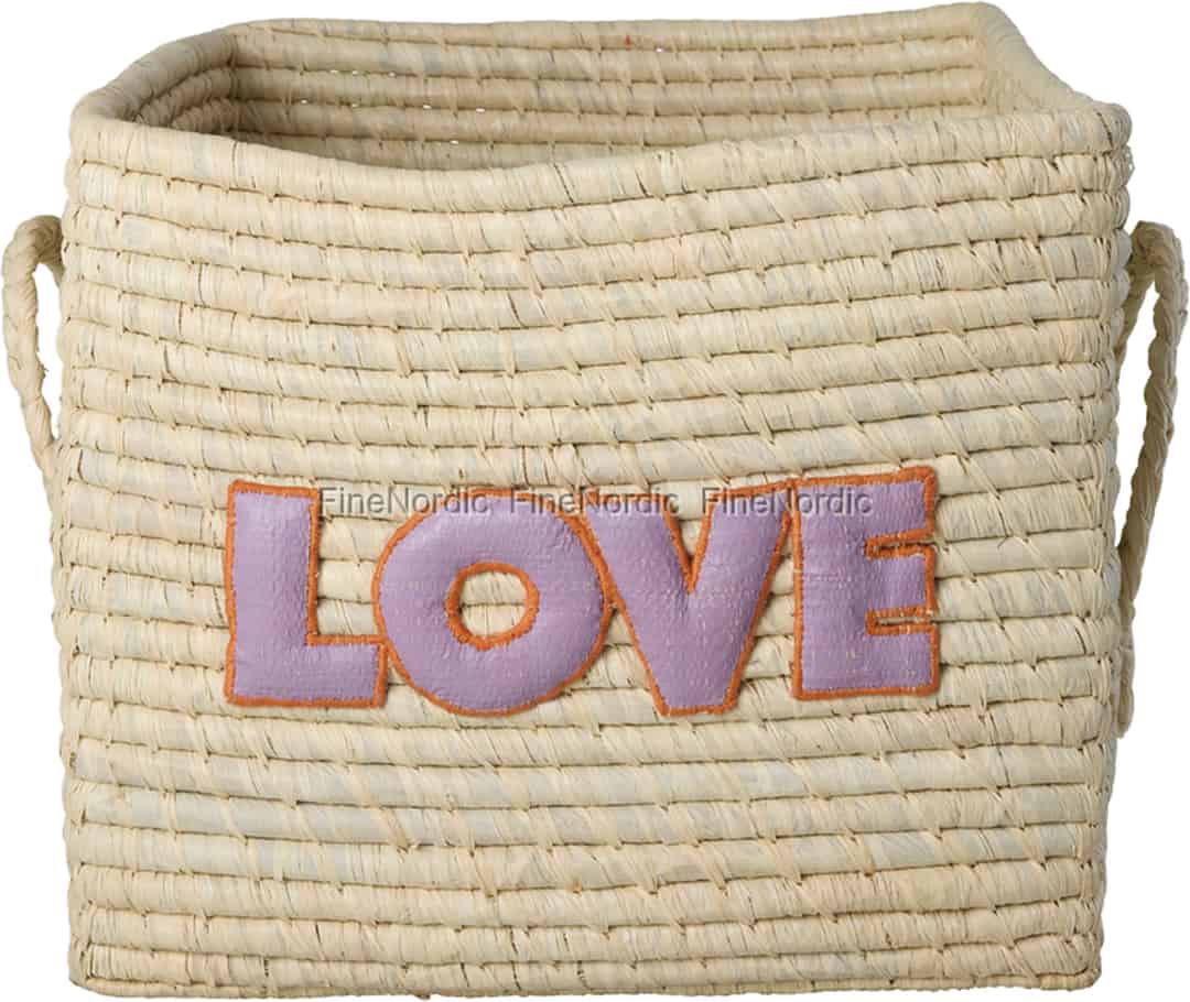 Mer än bara en plats att hålla ordning på saker, är denna korg en daglig dos av lycka. Det glada lila och orange 'LOVE'-broderiet fungerar som en vänlig påminnelse om att fylla ditt hem med saker som ger dig glädje. Föreställ dig den i ett lekrum, där den tryggt förvarar favoritleksakerna, eller bredvid din favoritfåtölj, fylld med mjuka filtar för en lugn kväll. Det är ett funktionellt konstverk som hjälper dig att skapa ett utrymme som känns organiserat, personligt och fullt av kärlek.