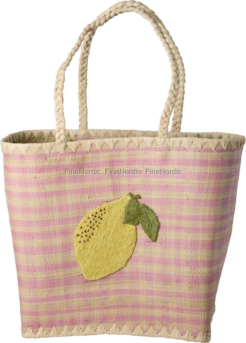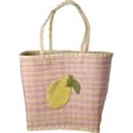 Rice Raffiaväska - Citronbroderi - Rosa - Stor
