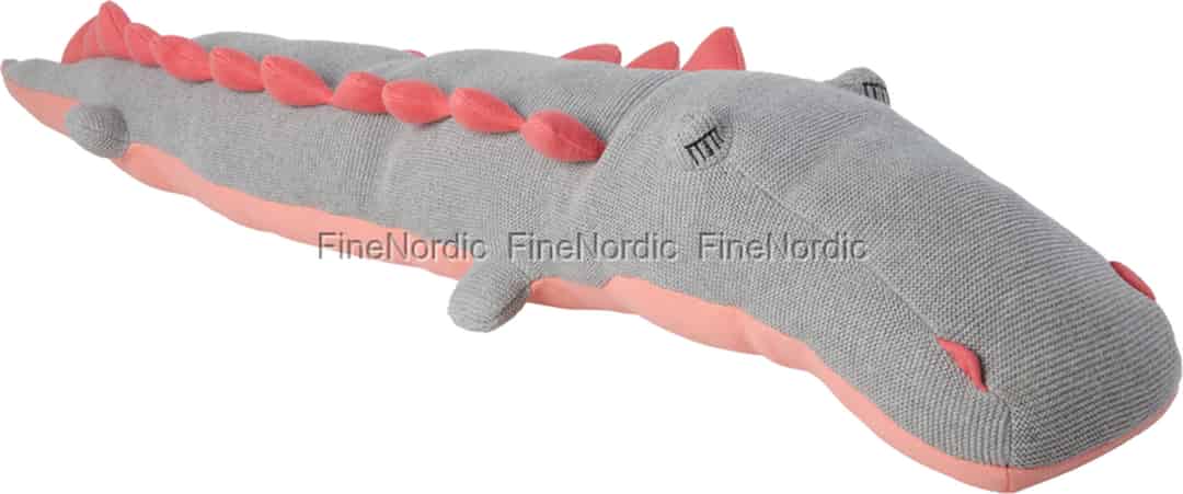 Med sin fulla meter i längd är denna charmiga varelse underbart mångsidig. Den kan vara en lojal vän att dela hemligheter med, en mjuk barriär längs sängkanten, eller en dekorativ detalj som tillför en touch av skandinavisk finurlighet till ett barnrum eller lekrum. Låt denna milda krokodil smyga sig in i ditt hem och se hur den blir en uppskattad del av ditt barns dagliga berättelser och äventyr, alltid redo för nästa stora kram.