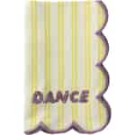Låt din bordsdukning sjunga en sång av ren glädje med denna förtrollande servett från Rice. Kända för sina livfulla designer, ger Rice oss en skapelse som perfekt fångar känslan av en solig brunch eller en glad familjemiddag. Den mjuka, krämfärgade bomullen, mönstrad med glada gula ränder, utgör en ljuvlig bakgrund för stjärnan i showen: den glädjefyllda uppmaningen "DANCE" i ett mjukt lila broderi. Det är en liten detalj som gör en värld av skillnad och förvandlar varje måltid till ett litet firande.