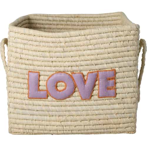 Rice Raffiakorg - Fyrkantig "LOVE" och handtag i raffia