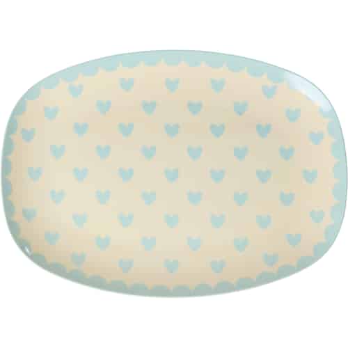 Rice Melamintallrik - Rektangulär "Favorite Hearts" Mint - Liten