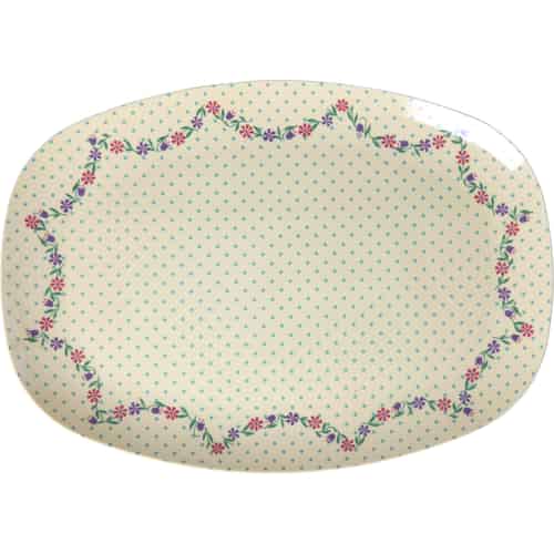Rice Melamintallrik - Rektangulär "Dots and Flowers"