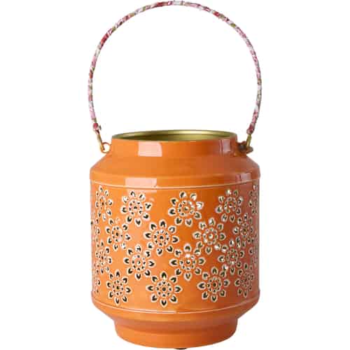 Rice Metalllykta - Blommönster - Tygklätt handtag - Orange