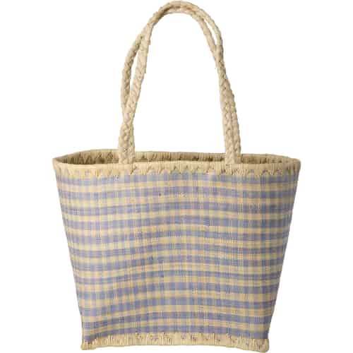 Rice Raffiaväska - Blårutig - raffiahandtag - stor