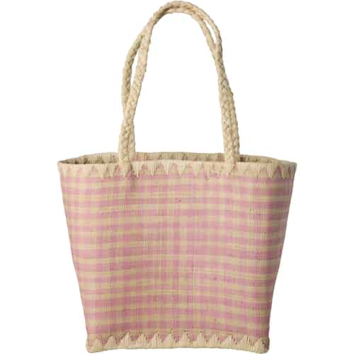Rice Raffiaväska - Rosa rutig - Handtag i raffia - Liten