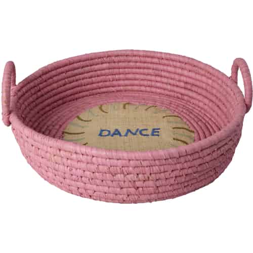 Rice Rund brödkorg i raffia - broderi "DANCE" - rosa