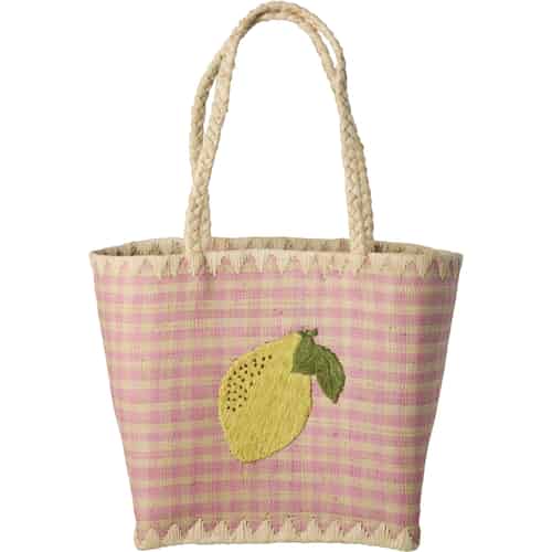 Rice Raffiaväska - Citronbroderi - Rosa - Liten