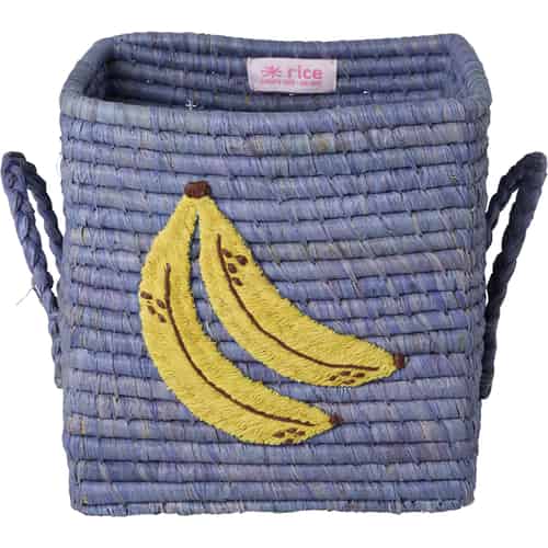 Rice Raffiakorg - Fyrkantig "Big Banana" broderi - Raffiahandtag - Liten