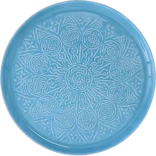 Rice Rund bricka i metall - Blå - Präglade detaljer - Stor