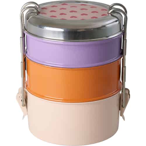 Rice Rund matlåda i rostfritt stål med 3 lager - Hjärtmönster