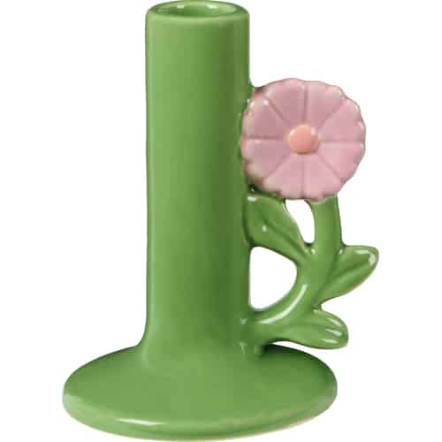 Ib Laursen Ljusstake - för 2,2 cm ljus - Grön med ljusrosa blomma