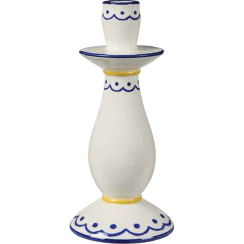 Ib Laursen Ljusstake - för 2,2 cm ljus - Vit - Blått och gult mönster
