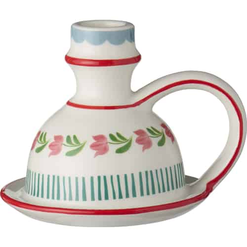 Ib Laursen Ljusstake - för 2,2 cm ljus - Vit med rött och grönt mönster