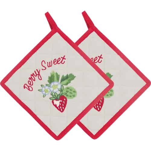GreenGate Grytlappar "Berry Sand" med broderi set om 2